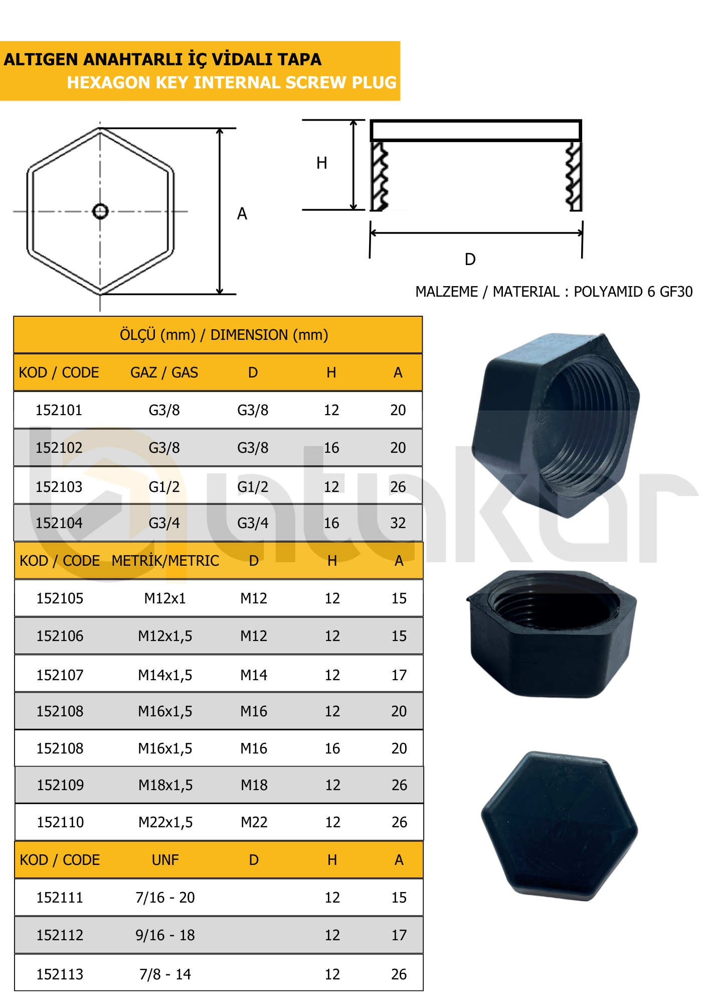 Konuya Geri Dön: Plastik Altıgen Anahtarlı İç Vidalı Tapa