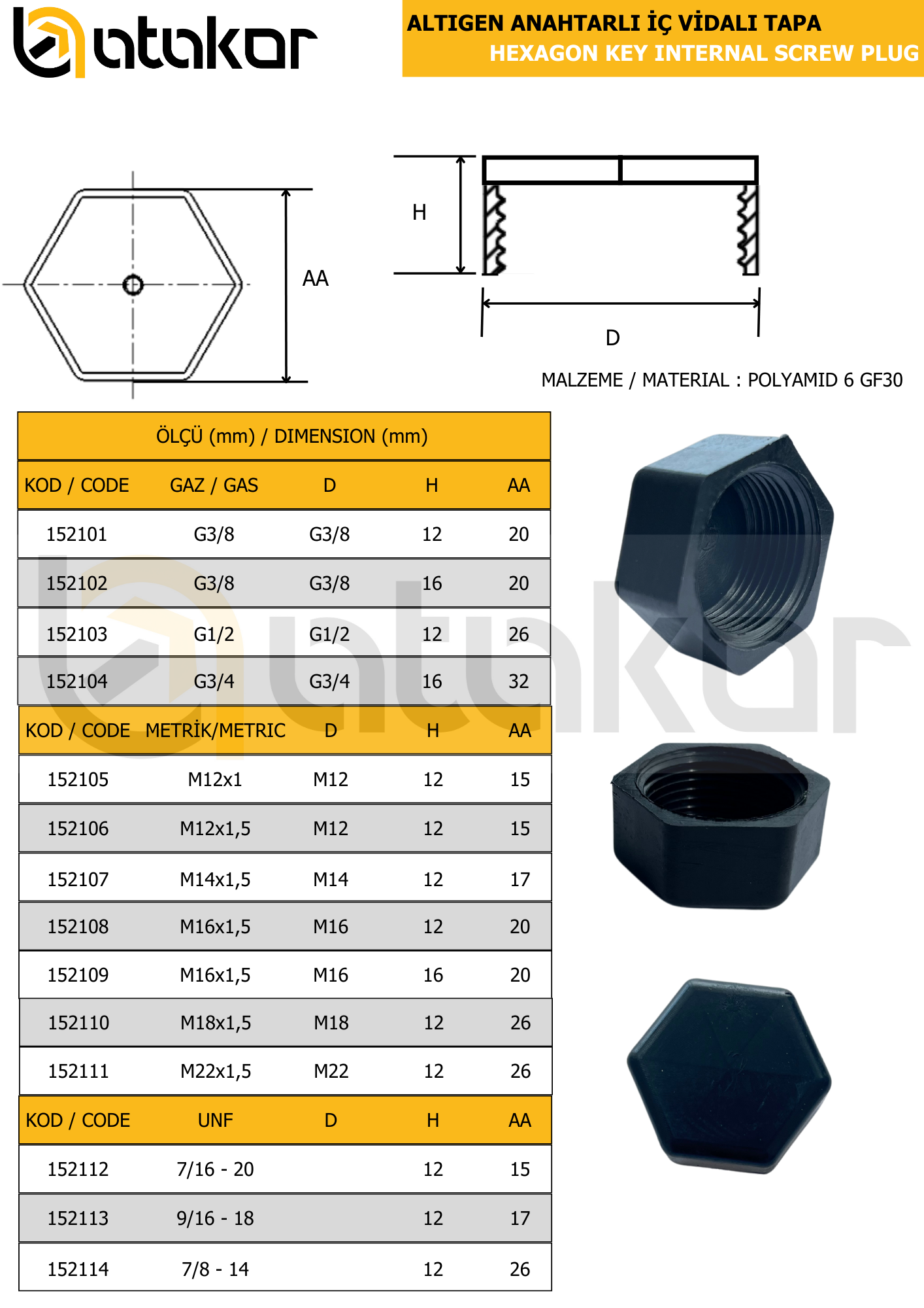 Konuya Geri Dön: Plastik Altıgen Anahtarlı İç Vidalı Tapa